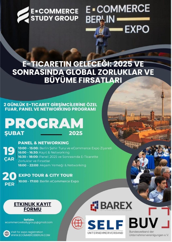 Der SELF Unternehmerverband nahm gemeinsam mit dem Bundesverband der Unternehmervereinigungen (BUV) und dem Berliner Unternehmerverband BAREX an der eCommerce Berlin Expo teil – einer der größten europäischen Fachmessen für E-Commerce, digitale Geschäftsmodelle und Onlinehandel. Unterstützt wurde das Programm zusätzlich von unserem internationalen Netzwerkpartner aus dem globalen Handels- und Wirtschaftsbereich.